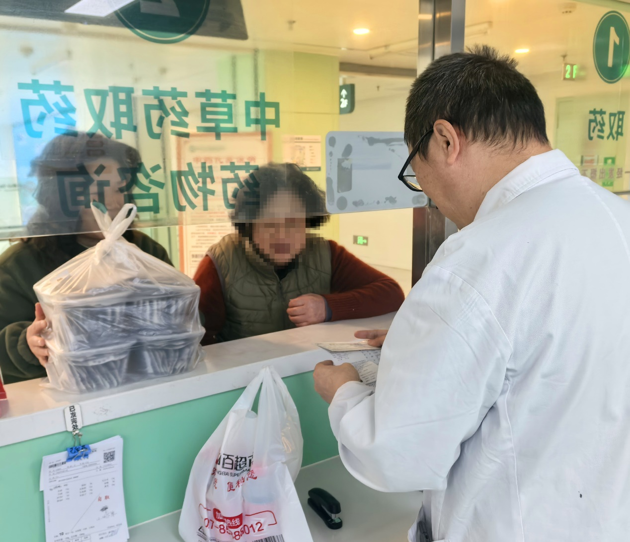 近日,患者李某来到中药房窗口取膏方,对徐敏中药师连连致谢。